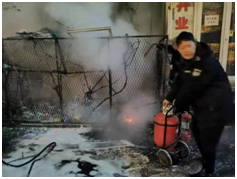 2056分,監(jiān)控室負責人徐志民,保安班長孫永升,隊員馮玲瓏、孫永翔,家屬樓物業(yè)負責人劉兆彥及家屬樓值班人員組成的救火隊伍迅速趕到現(xiàn)場,由監(jiān)控室負責人徐志民單位現(xiàn)場指揮。由于現(xiàn)場火勢較大,近三米高的線路已經(jīng)被完全燒毀,為避免發(fā)生二次爆炸及更為嚴重的后果,徐志民指揮大家先用滅火器將火情進行控制,并將液化氣罐從火場中搶救出來,避免了液化氣罐發(fā)生爆炸,此時張主任、王主任、宮臣、隊長肇興柱等人先后抵達火災現(xiàn)場,對火災撲救工作進行了詳細的部署,而后眾人利用滅火器、消防栓等消防設(shè)施徹底將明火完全撲滅。與此同時消防車也及時趕到,并對火災現(xiàn)場進行了詳細確認,在確保沒有安全隱患后詢問了火災發(fā)生的詳細情況,并對英勇救火的所有人表達敬意。沈陽廣播電視臺領(lǐng)導得知此事后十分重視,第一時間詢問火災處置情況及保安隊員的安全情況,并對此次火災應急處置深表贊揚。